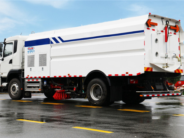 ● 左右側(cè)噴桿V形布置和吸嘴內(nèi)置主噴桿無間隙高壓噴嘴噴水布置,有效的將清洗后的污水和垃圾全部歸攏趕**吸嘴處,并吸收于污水垃圾箱內(nèi),使路面不留塵土、積水,路面清洗、刷掃和污水回收效果佳。