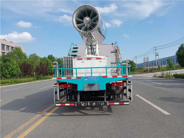 3、配套柴油發(fā)電機(jī)組供電安裝在運(yùn)輸車輛上,操作靈活,使用安全可靠,遙控和人工**操作,可隨意**調(diào)節(jié)水平旋轉(zhuǎn)噴霧角度。