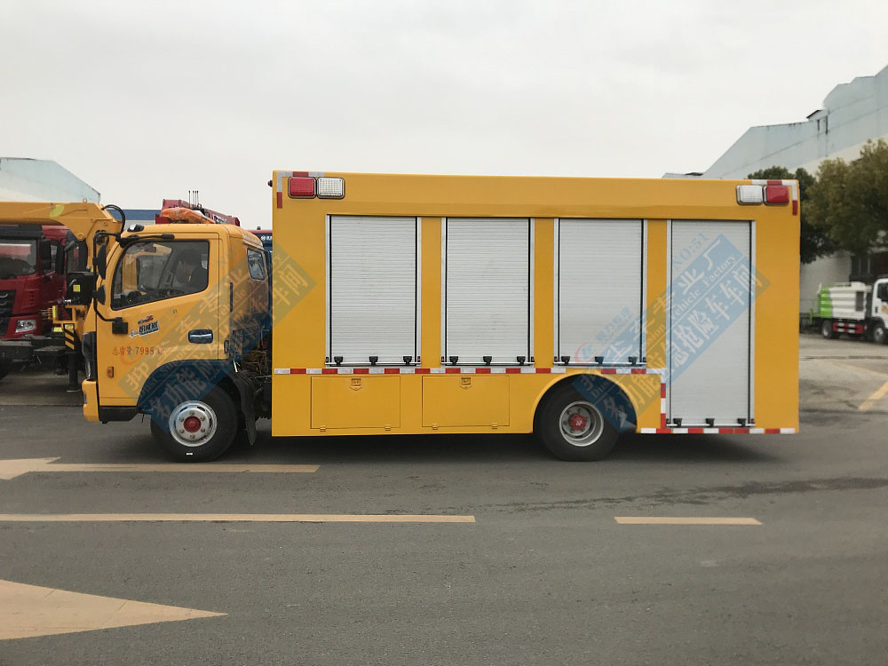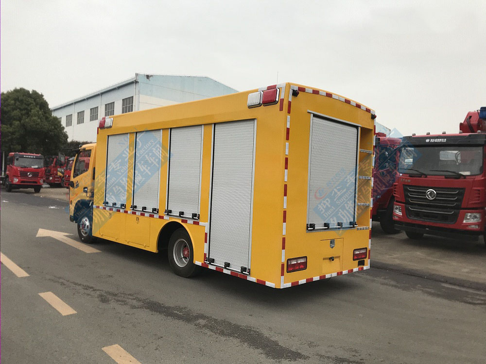 救險(xiǎn)車(chē)廂體外部鋼材為優(yōu)質(zhì)冷軋鋼板,內(nèi)襯優(yōu)質(zhì)冷軋鋼板折彎骨架,配備多個(gè)高端鋁合金卷簾門(mén),工藝**,強(qiáng)度牢固。廂體為全密封結(jié)構(gòu),具備運(yùn)輸、防雨、防腐、防火、防銹要求。車(chē)廂內(nèi)頂分布多個(gè)照明燈,給夜間工作或維修作業(yè)時(shí)提供充分光線。發(fā)電機(jī)組進(jìn)排風(fēng)消聲處理,消聲器做降噪處理。工作門(mén)下裙圍處設(shè)有隱藏式翻轉(zhuǎn)梯,與車(chē)廂底板框架連接,方便拿取物品。
